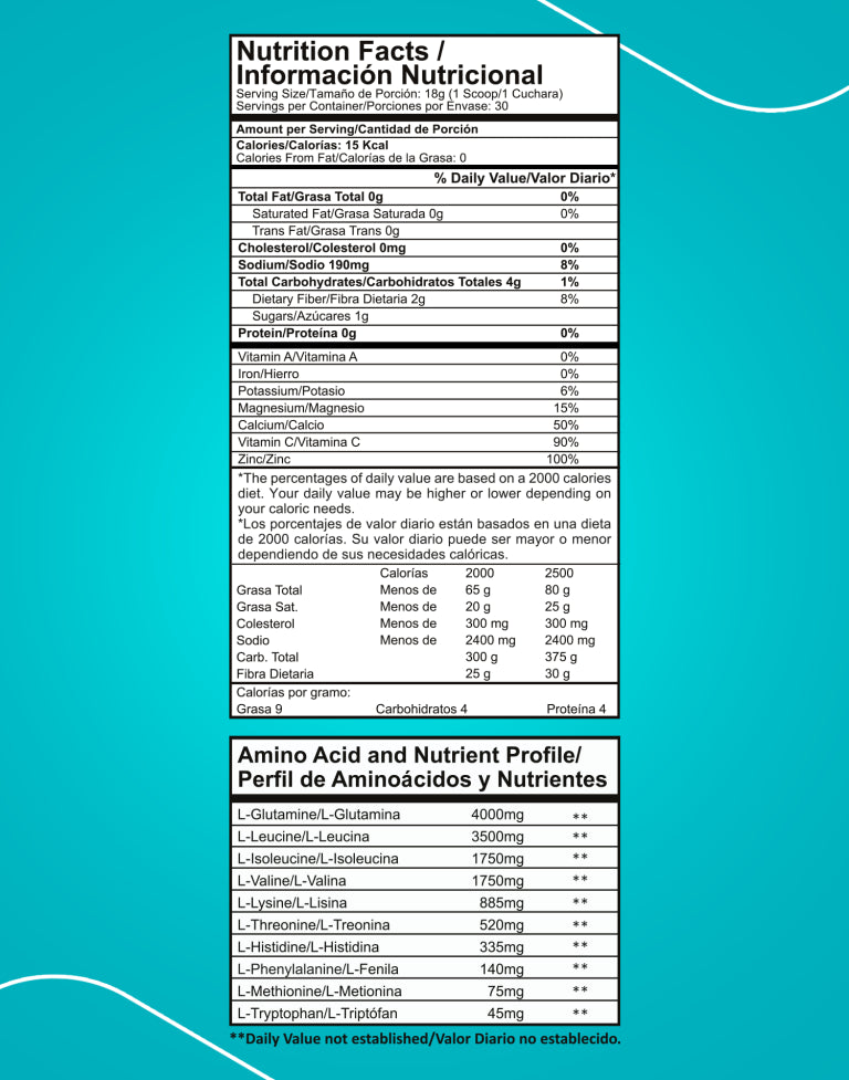 -Fórmula completa de aminoácidos BCAAs, EAAs, y glutamina perfecta para tomar durante tu entrenamiento.