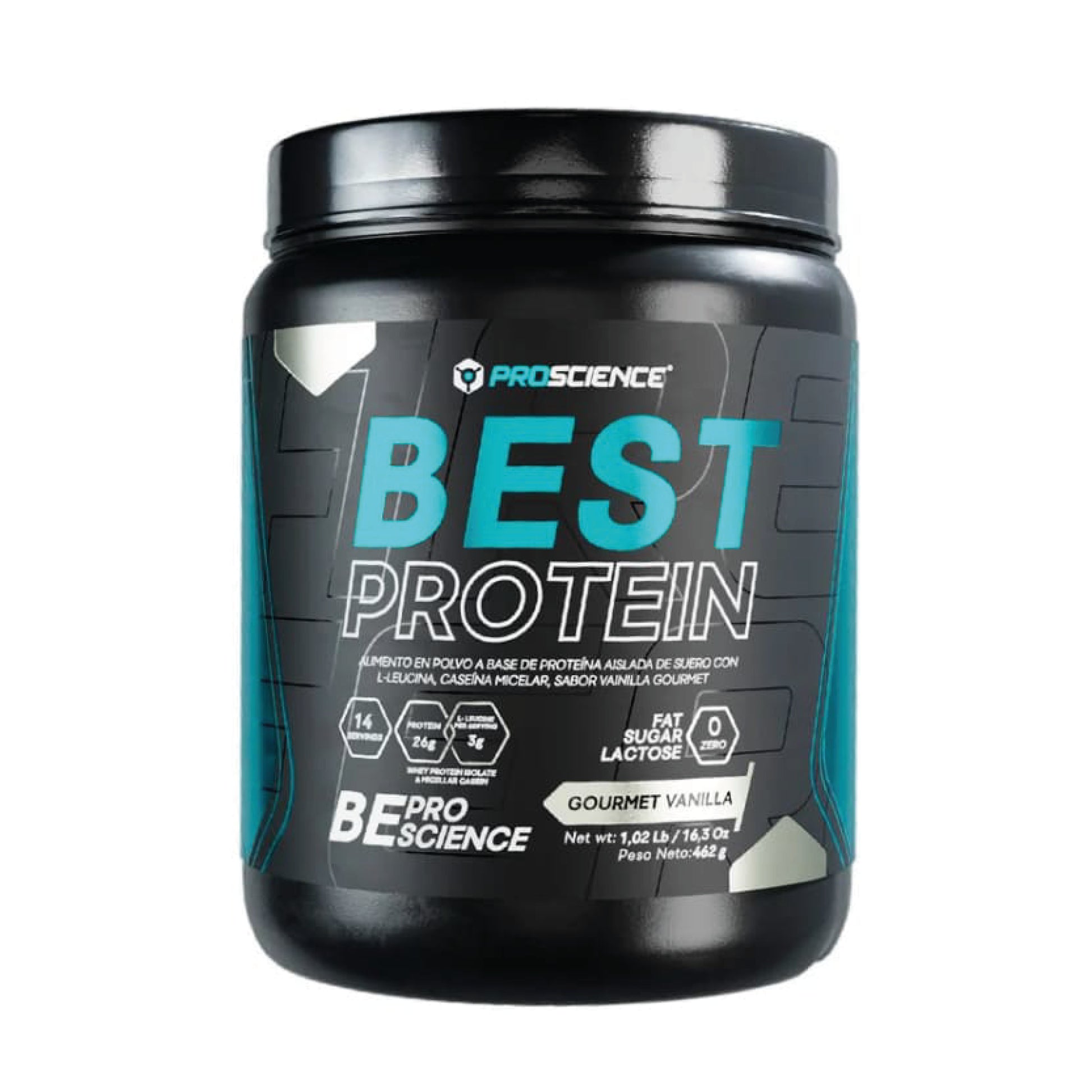 -Proteína aislada de suero de leche de alta calidad, caseína micelar y leucina.