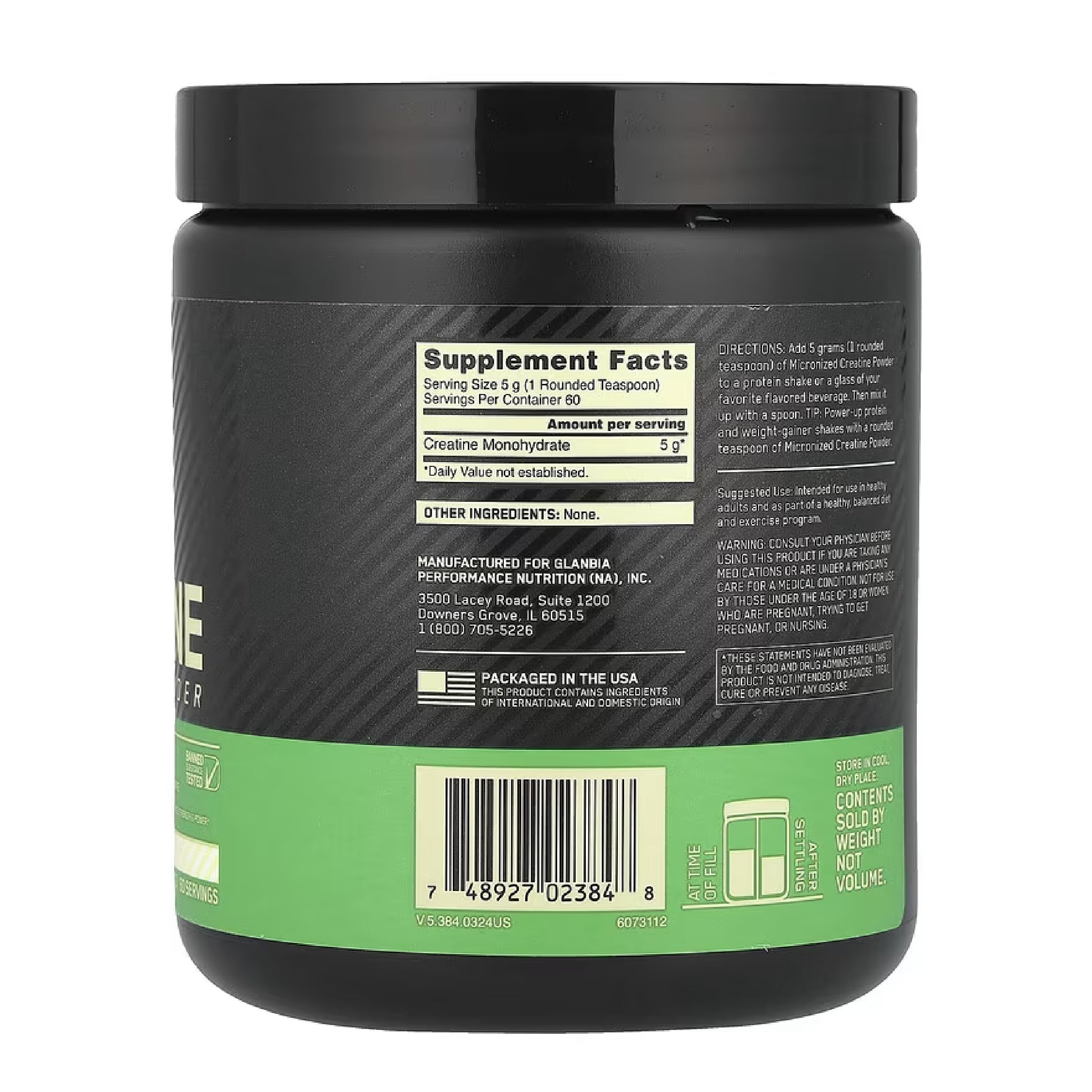 -Fórmula 100% pura de monohidrato de creatina micronizada, con certificación Informed-Choice.